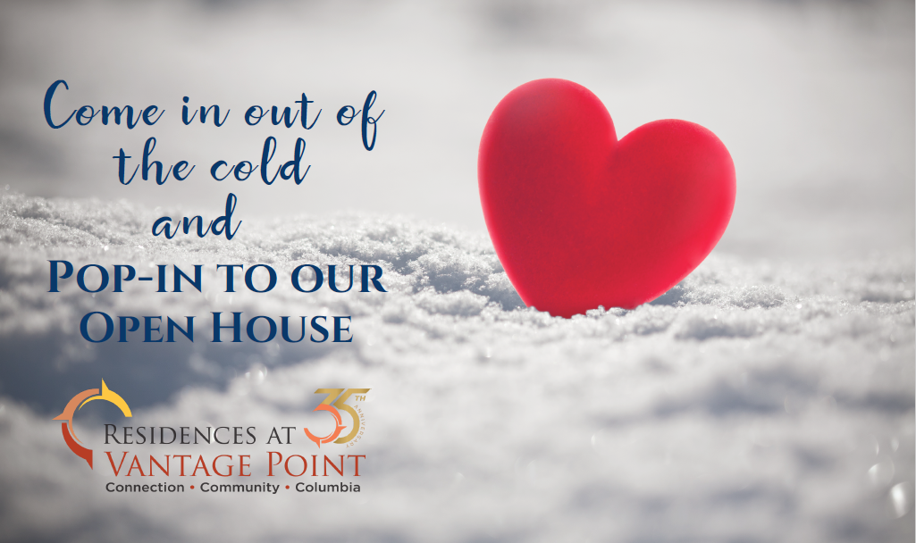 Pop-in to our Open House and allow us to introduce you to Residences at Vantage Point. Enjoy something warm to drink as we answer your questions about senior living and chat with residents in a welcoming, casual atmosphere.